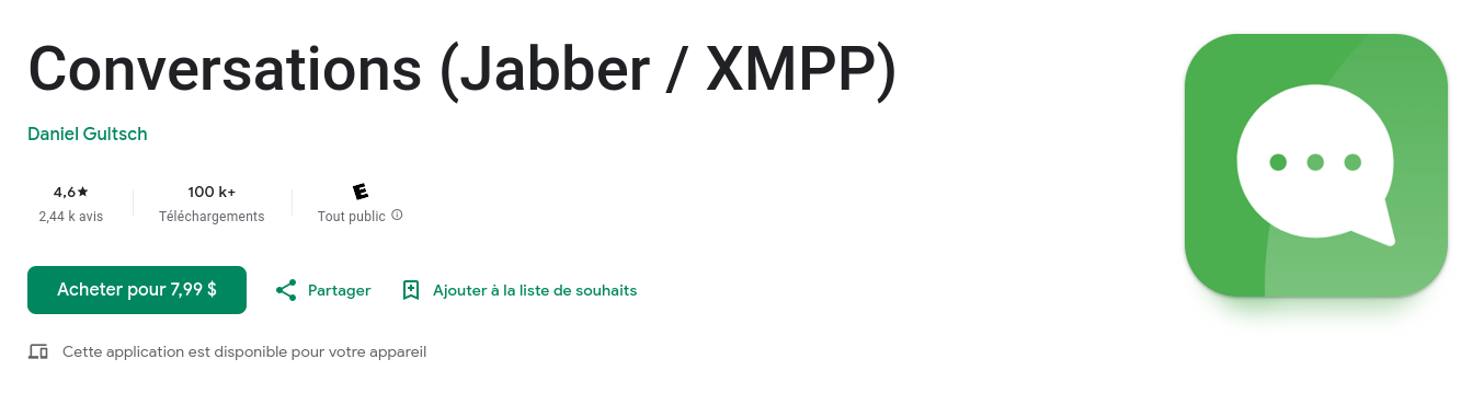 Il est possible d'installer Conversations gratuitement depuis F-Droid