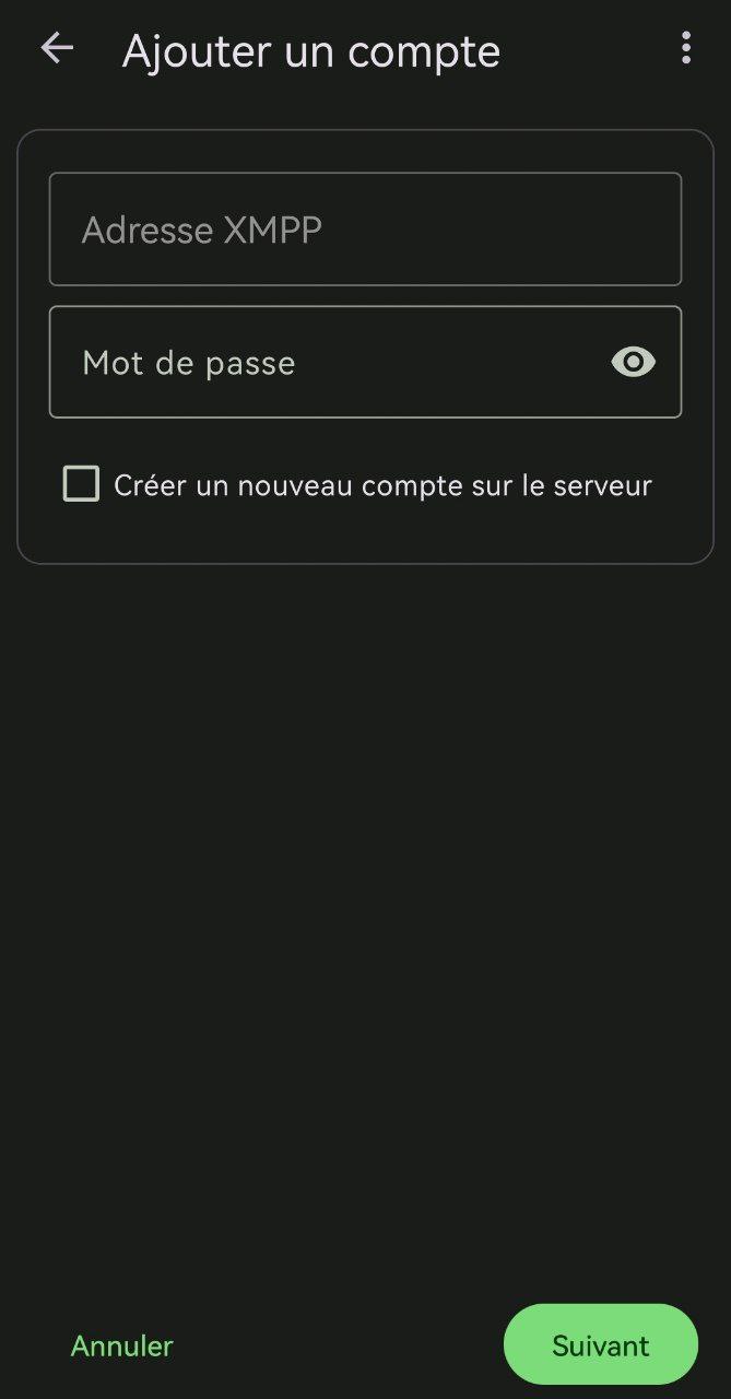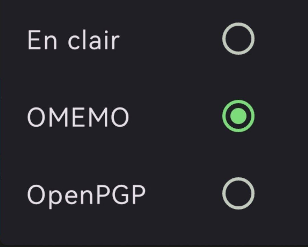 Les conversations sur XMPP peuvent être chiffrées, dans ce cas, vous n'aurez pas accès aux messages qui ont été envoyés avant votre première connexion sur cet appareil. Vous pouvez paramétrer le chiffrement de vos messages pour chaque conversation directement sur Conversations:
