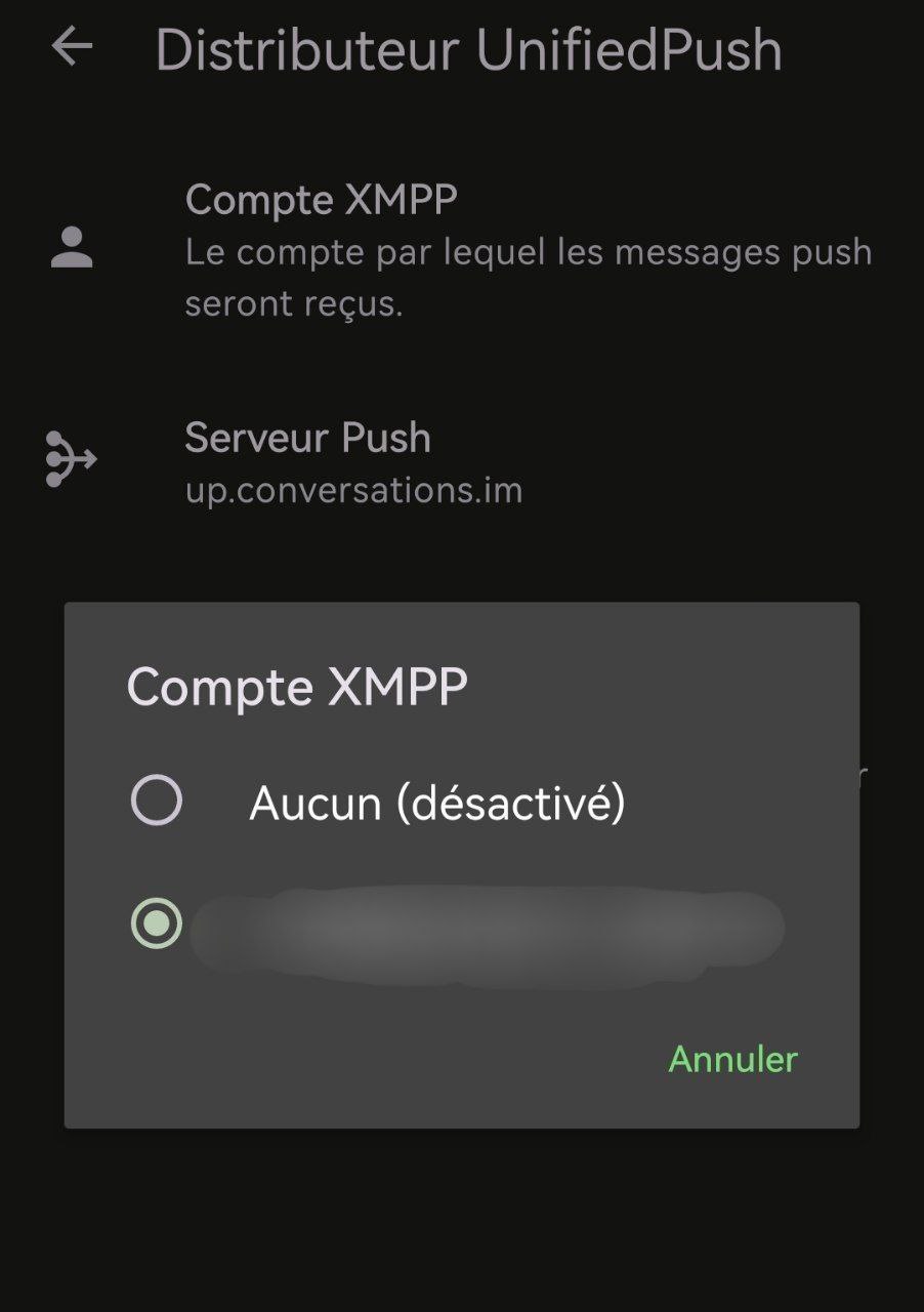 - Cliquez sur "Compte XMPP" et sélectionnez votre compte
